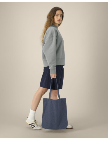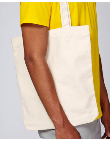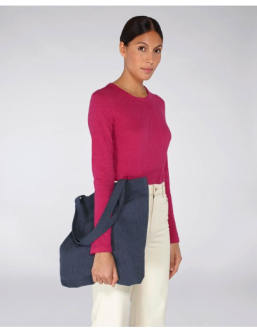 - Long handles in self-fabric reinforced with cross-stitching