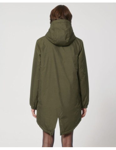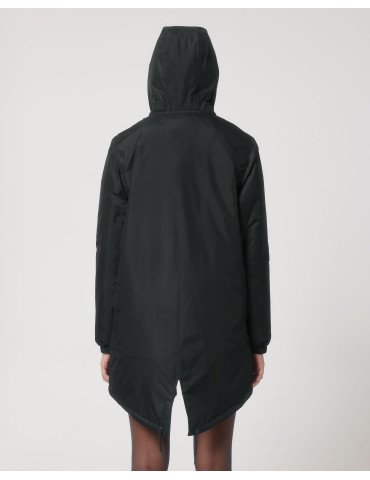 - Adjustable hood opening and hem with elastic cord and plastic stoppers