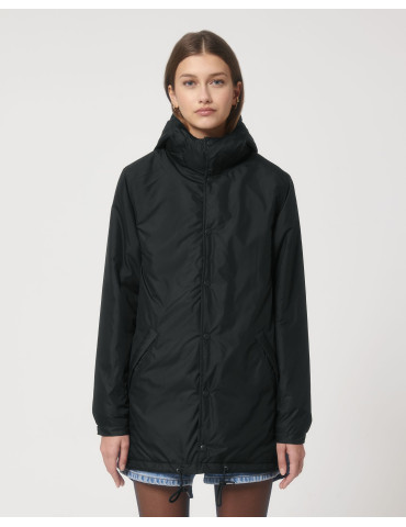 - Adjustable hood opening and hem with elastic cord and plastic stoppers